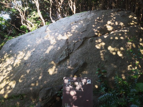 散策路脇にあるこの石は、弘法大師が爪で「南無阿弥陀仏」と彫ったとされる弘法大師の爪書き石。このあたりで弘法大師は