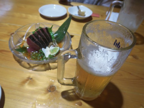 もちろんカツオのたたきからスタートです。(800円) あとはウツボや天ぷらの盛り合わせとかを注文しましたが、きっちりとした仕事で、