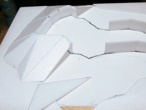 こちらがある程度起伏が出来上がった状態です。ホビー用の接着剤を使っています。