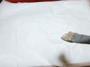 ティッシュペーパーを貼り付けるのは、スチレンペーパーのままだと粘土や水性塗料が上に乗らないからです。