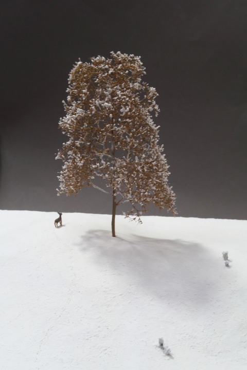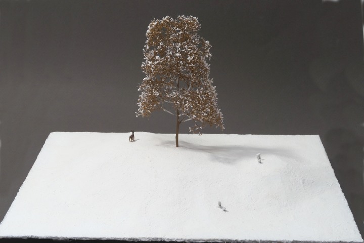 今回つくるのは、小さな丘の上に樹が1本だけというもの。そこにいろいろな生き物が集まってきて、何か心温まるような世界が