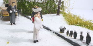 風にのって、開けた窓から小さな訪問者が訪れた。そんなごくありふれた風景をジオラマにしてみました。