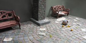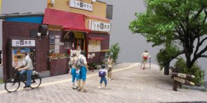 歴史を重ねたアパートの玄関先を再現しました。ドアや壁、歩道といった部分の質感の再現が見どころです。