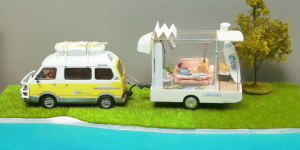 軽のワンボックスと軽規格のトレーラーハウスの組み合わせです。こんな感じで全国を巡ることができたらいいね。