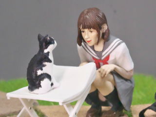 新しい1/24スケールのジオラマが完成しました。Campus Friends U というキットを使って、さりげなく日常の1シーンを切り取ったスナップ的な作品です。