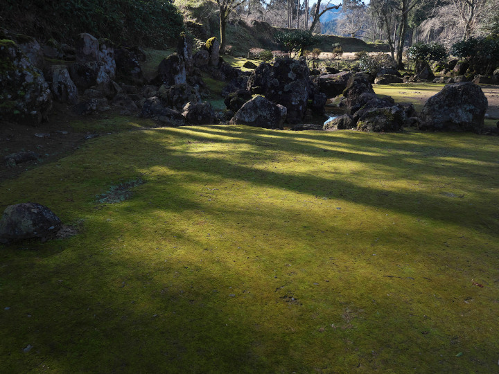 こちらは朝倉氏の館のなかにある庭園、流れる水と苔が印象的。 ここにいると何か戦国時代につくられたことを忘れてしまいそう、それほどに優美です。