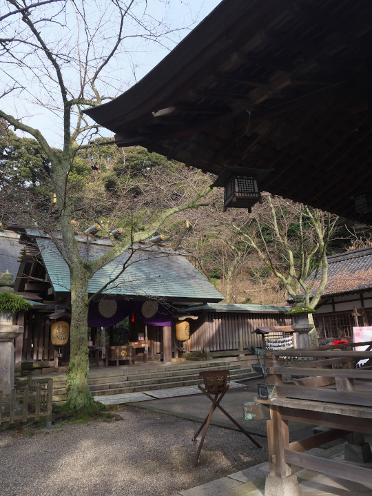 お城は入江を見下ろす山の上にあるのですが、画像はその城山の中腹にある金崎宮です。「難関突破と恋の宮」として知られているそうで、なんとなくロマンチックな感じです。