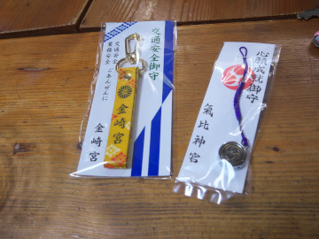 敦賀で買ったお守り二種(金崎宮と気比神宮)