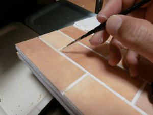12 レンガ部分の再塗装をします。使用した塗料はモデリングペーストにハムスター用の砂を混ぜ込み、