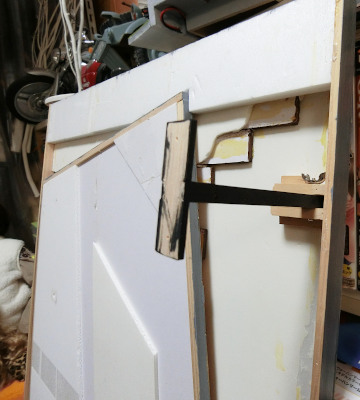 8 スチレンボードと角材で歩道になる部分をつくりました。