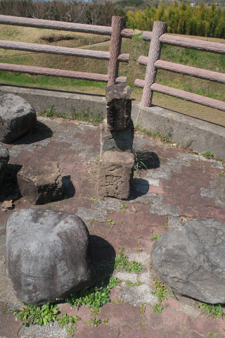 2kmほど下ったところで何やら石碑の残骸のようなものを見つけた。それをつなげてみるとある波多野城址と読める。