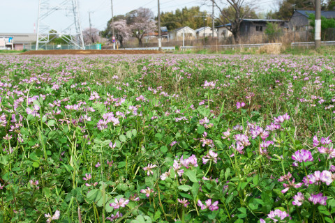 道路をはさんだ反対側には、この時期レンゲが咲きます。近くには「れんげの里 あらいそ」という交流センターがあるのですが、