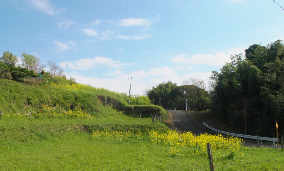 青い空の下、のどかな風景。だいたい1時間ぐらいあればぐるっと1週できるかな。ところどころに古い民家やお寺、神社もあるよ。ここからちょっとした