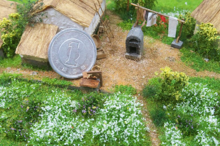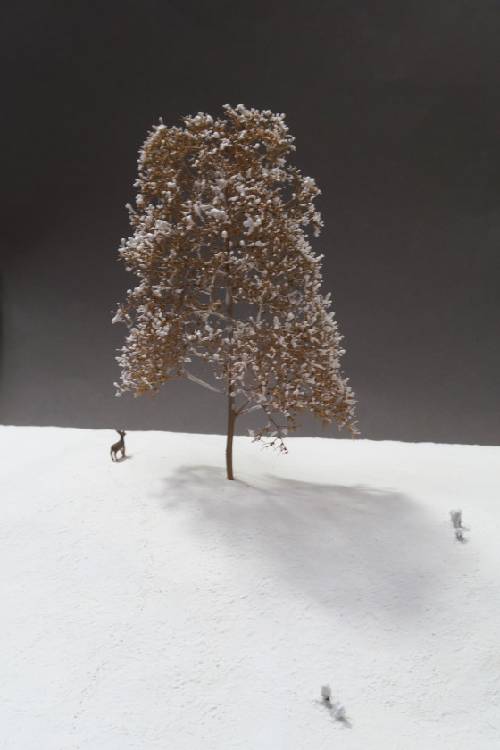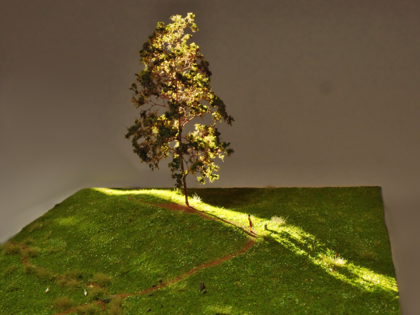 小さな丘の風景という組作品を思いついたのは1年ほど前です。20cm×25cm、スケール1:150の小さなジオラマをこの間に4作品制作しました。