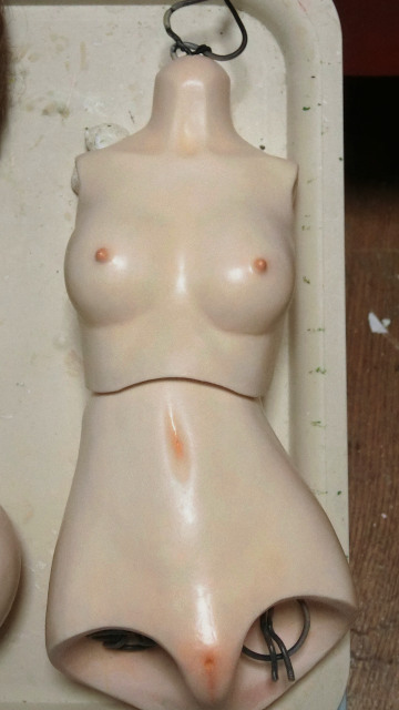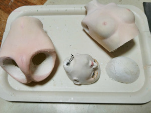 最初につくった球体関節人形 ayumi のリメイク アイドールに向けてつくっていた1/6オリジナルドールの制作が一段落したところで、次のお人形作りに入ることにしました。 まったくの新作の制作も考えていたのですが、とりあえず最近可愛がってあげられない旧作品も多くなってきたので、もう一度そのリメイクにとりかかることにしました。 ![]() こちらは ayumi 、15年前に自分が最初につくった球体関節人形です。いろいろなものを参考にしながら1年半近くかけて完成させました。 当時は作り方ってものを理解していなかったし、「吉田式 球体関節人形 制作技法書」(名著)という教科書的な本もなかったので、えらく時間がかかったのを覚えて います。概形は2か月ほどで完成したものの、あちこち手直ししていたら、2作目より完成が遅くなっちゃった。 ![]() この作品を保存していたのは、4.5畳の自分の部屋の隅っこにある約半畳の収納スペースです。ここに旧作品や参考にしたSDやDD、海外のキャストドール、他の方の つくられた創作人形なんかが置いてあります。 この作品を取り出そうと、あれこれ引っ張り出したら、あっという間に4.5畳はこのありさま。 chico ちゃんも隅っこに追いやられています。 そして信じられないことに実はこれが全部じゃなくって、収納の更に奥にはまだ1/6のドールやフィギュアが100体以上ある・・・。 実は最近気になっていたんです。もしかしたら自分はドールコレクターとしてはすでに破綻しているのではないかって、それが今回、あらためていちばん奥にあった作品を 取り出したことで気づいた。しかしまさかこれほどだったとは・・・。 しまいっぱなし、遊んであげられない、というのはお人形の価値をすでに見出していないと言われても仕方ないので、可愛そうだけど、少しクリーニングしてヤフオクあたりに 出すことにします。 昔はこういったお人形達を参考にして自分のドールをつくっていたんだよね、ありがとうって気持ちです。 リメイクプラン A 昔つくった球体関節人形は、現在のものとはかなり仕様が違うので、ここはまず今自分の作るスタンダードな仕様に改めたいと思います。 1 一体だった胴体は分割して腰関節をつくります。 2 ヘッドパーツも上下に分割してアイやウイッグは交換できるように変更します。 3 手足と肘パーツはレジン製のものに置き換える。 4 マグネット仕様(後述)に改める。 ではこの線そって作業を開始します。