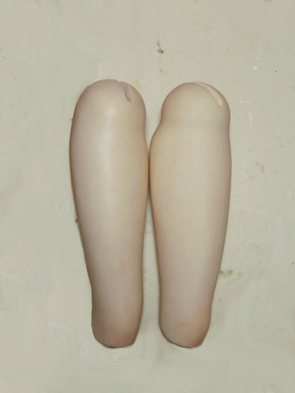 ayumi の太ももパーツです。左はスーパークリアー、右はウレタンで仕上げたものの比較です。分かりにくいかもしれませんが、ウレタンの方が半透明の