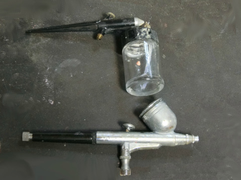 作業が終わったらエアブラシのお手入れをすぐにする、これは大切。具体的にはエアブラシのクリーニングキットとクリーナーでちゃんと洗います。
