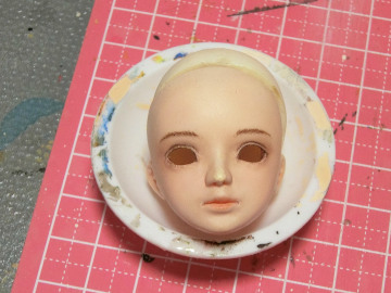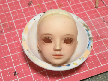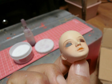 あとこのドールは入れ目タイプなので、最後に睫毛をつけ、アイをパテで固定すれば、修復は完了です。
