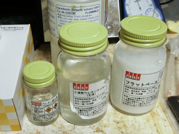 このままだと塗料がすぐに落ちてしまうので、次にコーティングを行います。自分の場合には、前にも触れたつや消しウレタンを使いますが、一般の方には