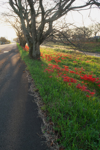 古びた橋を渡ろうとしたとき、土手が延々と赤く染まっていることに気づきました、彼岸花です。