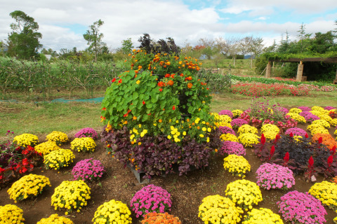 ここは神奈川県の施設なんだけど、季節によって様々なテーマで花畑が演出されます。今の時期はやっぱりハロウイーン、おっきいカボチャがごろごろしてました。