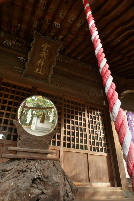 本殿の前には巨大な鏡、なぜここにあるのか調べたのだけど良く分からない。分からないとなおさら気になる。