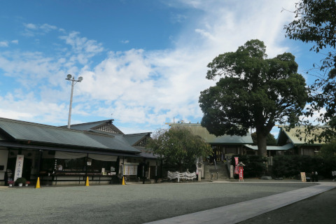 ご神木のクスノキが本当に大きい。その昔、この地に伊勢の大神宮を迎えたというのが、この神社の始まりで、現在の市の名称の起源にもなっています。