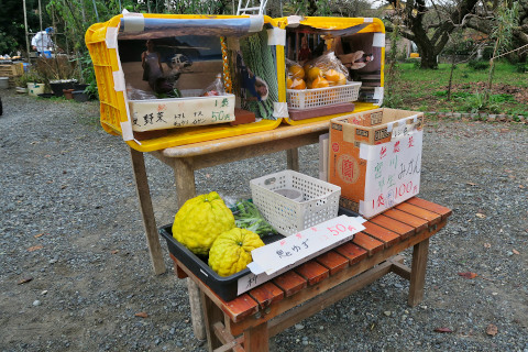 山の斜面には梅のほかにも、ミカンなどの柑橘系の作物やキーウィフルーツなどが植えられていて、ところどころにこんな直売所があったりする。もちろん安くて