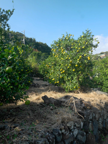 県道と下の国道の間はいちめんのミカン畑がひろがります。たびたび災害の起こるような急斜面を開拓したっていうのがすごいね。そして階段状に整地し、