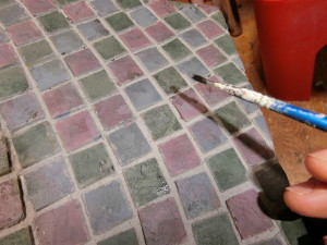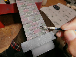 10 充填剤が乾いたところで、再びレンガの着色を行います。