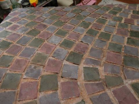 今回のジオラマのポイントになりそうなのは歩道の石畳、これがリアルに作れるかどうかがまずは最大の課題です。