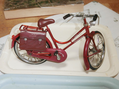左側はいつどこで購入したか忘れましたが、ちょっと出来の良い1/6スケールの自転車です。ペダルをこぐとちゃんと後輪が回ります。部分的に