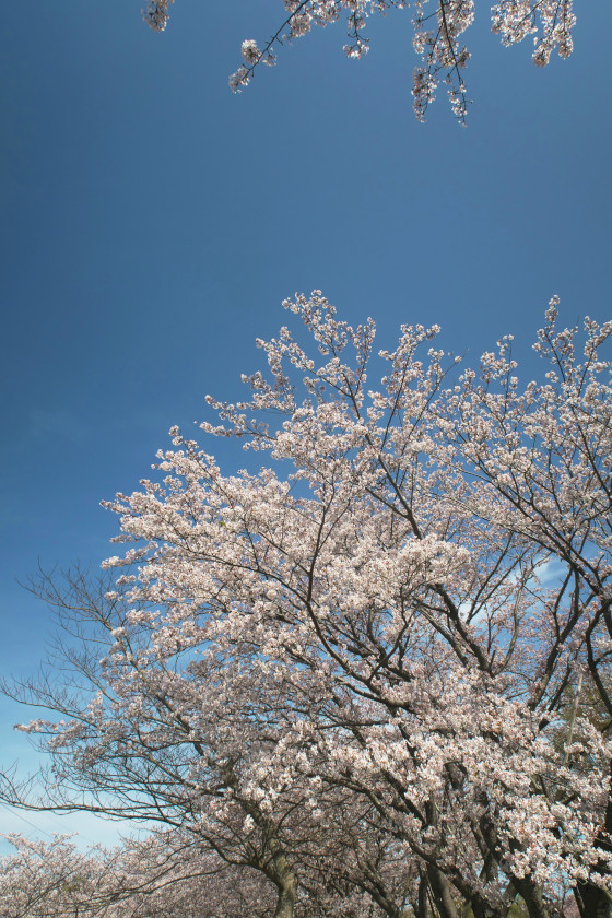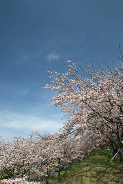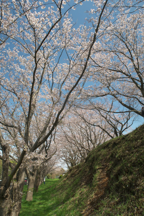 この丘の特徴はご覧のように上下に二段に列になって桜が植えられていること。だから丘の上段に行くと上にも下にも桜が見える、まるで自分自身が桜に包まれている感じに
