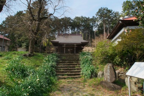 その近くにある三嶋神社はシダレザクラやスイセンが有名だけど、ここには平安時代末期の伝説の武将、善波太郎の居館のあった場所と伝えられており、