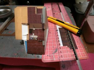 まずは画像をもとにしてサイズを割り出し、2mm厚のスチレンボードで外壁を組み立ててゆきます。
