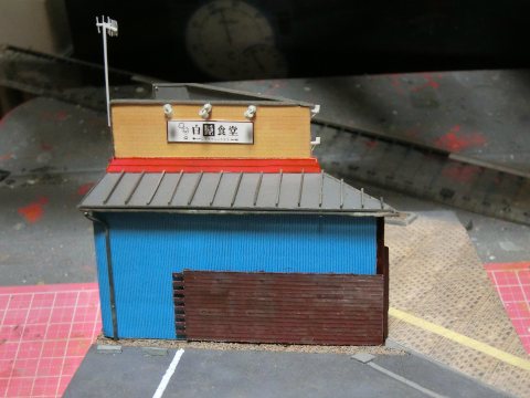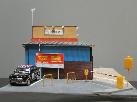 ここまでの作業で食堂と手前の歩道、隣の駐車場がそれらしく出来上がった。