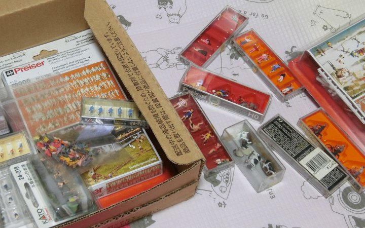 ずっと以前に、鉄道模型のフィギュアやストラクチュア、いろいろ取り交ぜて1箱2500円みたいな出品がヤフオクにあって落札したんだけど、考えて