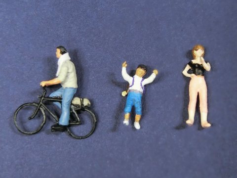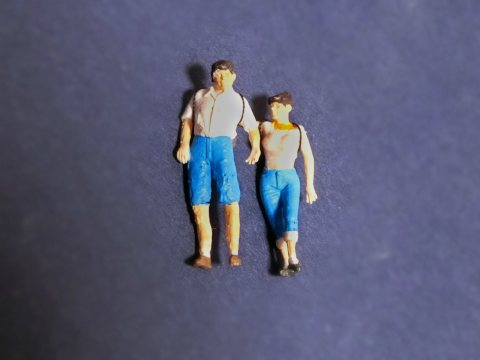 ちなみにHOゲージのフィギュアは1/87スケールで身長が2.1cmほどに統一されています。これを1/72のジオラマのなかで使うと身長がだいたい