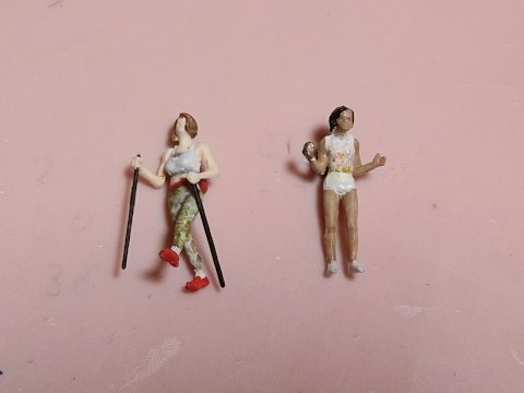 但しこれは女性フギュアに限ったことで、男性フィギュアは低すぎる、だからお父さんフィギュアは真鍮線とエポキシパテで3mmぐらい身長を高くしました。