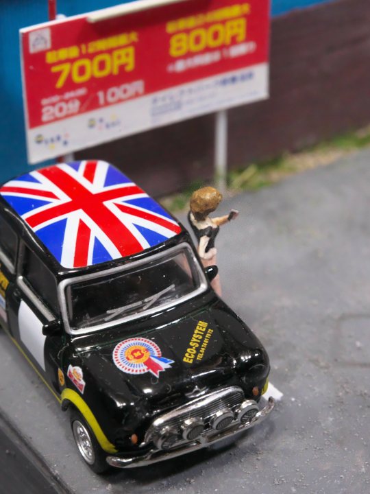 ここがジオラマの背景となるわけだけど、背景の中心的な存在がこのミニクーパーです。これを置くことで視点がさらに増え、ジオラマの奥行きが増す。