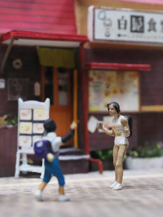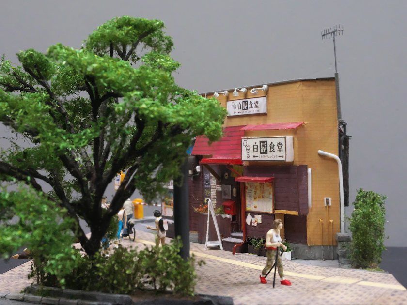 小田急線「鶴巻温泉駅」の北口に実在する白髭食堂というお店周辺を1/72スケールのジオラマで再現してみました。もちろんキットなどあるはずもなく、基本、