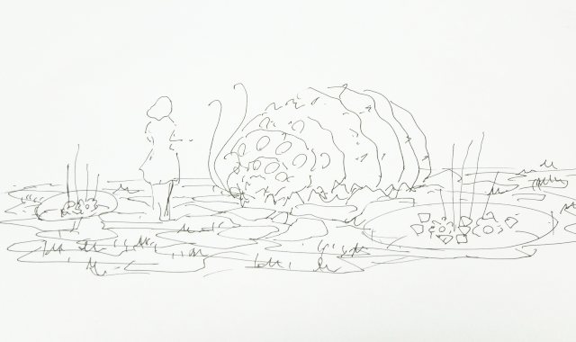 A ポーズとしてはオームと対話しているシーンにする。具体的にはナウシカは直立させる。
