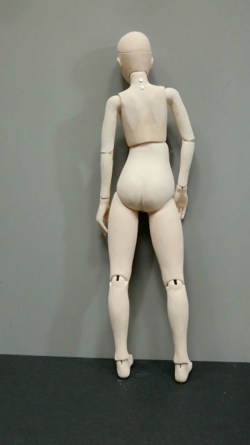 いたずら好きな弟分をつくってあげようと、少し小柄に仕上げています。身長は47cm、市販の1/4スケールの洋服が着せられるようにボディの方は設計してあります。