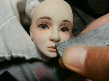 さて、最終工程で最も時間がかかるのは、やはりヘッドパーツの仕上げだと思う。この作業だけでお人形の雰囲気ががらりと変わるので、