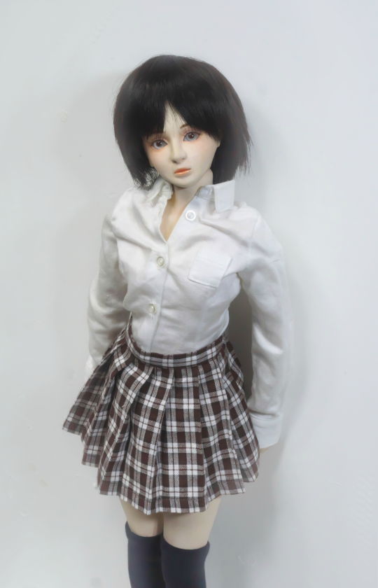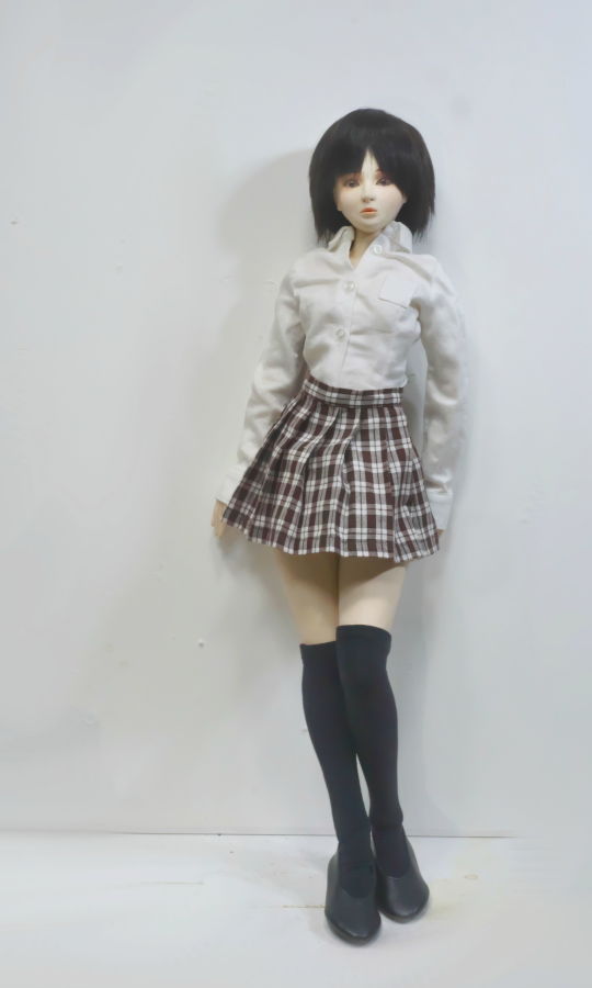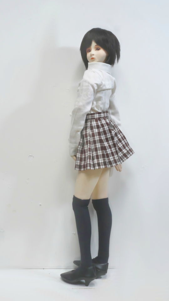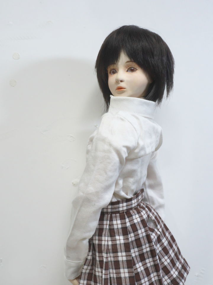 そこで手持ちの1/4スケールドール用のシャツとスカートに着替えてもらったのが後半の画像です。