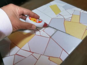 木工ボンドの空になった容器に、グレーに着色したモデリングペースト、水、木工ボンドを入れて、注入できる充填剤のようなものをつくりました。