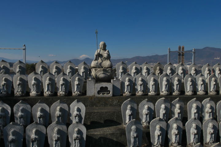99体の石仏の彼方に富士山が見えるという、なかなか見られない景色。ここからの眺望は本当に素晴らしい。