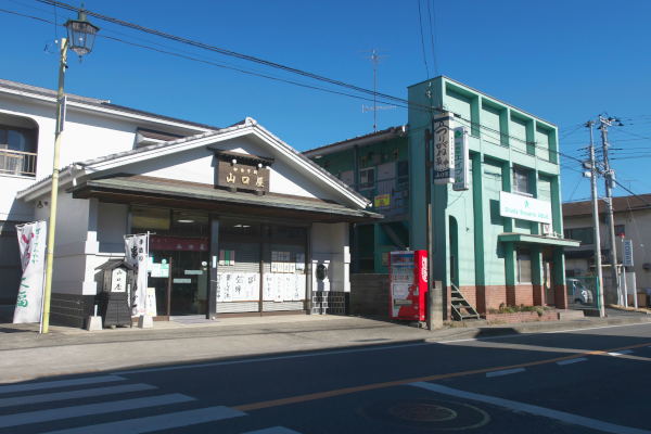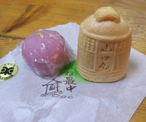 左側のお店は和菓子の「山口屋」、名物はつりがね最中(180円)、中の餡がなめらかでおいしい。このほか季節の和菓子が目を楽しませてくれる名店です。