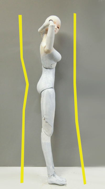 ドールの横に引かれた黄色い線をフィールドラインと呼んでいますが、これは空間的な拡大縮小を表現する自分のオリジナルアイディアです。