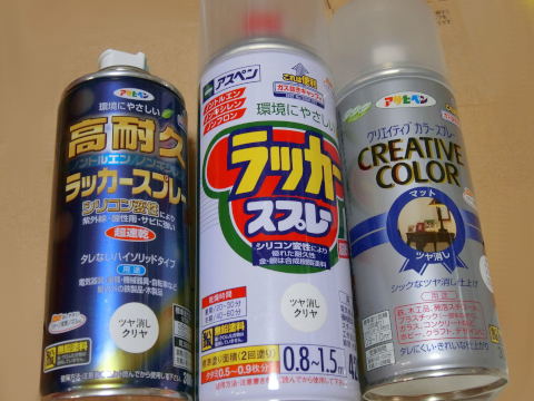 画像の真ん中、「ラッカースプレー」は使用感はほぼ同等、代用品として仕える。「クリエイティブカラー」はきめ細やかでシックな感じには仕上がるが塗膜は少し